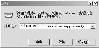 在将Windows Server 2003安装光盘放入光驱后,依次点击“开始”、“运行”,在弹出的“运行栏”中输入如下格式的命令:“光盘所在盘符:\I386\Winnt32.exe /checkupgradeonly”,如图1所示。(注:其实对于WindowsXP也可以采用该方法,使用此命令后会首先弹出“获得更新的安装程序文件”对话框,选择“否,跳过这一步继续安装Windows”,再点击“下一步”按钮,Microsoft Windows升级顾问将自动检测系统中是否有不兼容问题或其他问题)