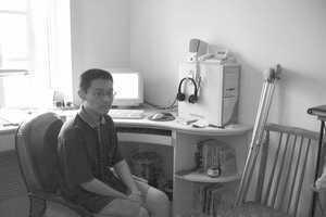 他把家里买的品牌电脑中的CPU换了,主板换了,内存也拼凑到了256MB,硬盘加装成了双硬盘。“内存是用的三根内存条,不太稳定。”“因为兴趣所在,计算机硬件、网页制作还凑合。”俨然一副小专家的模样。