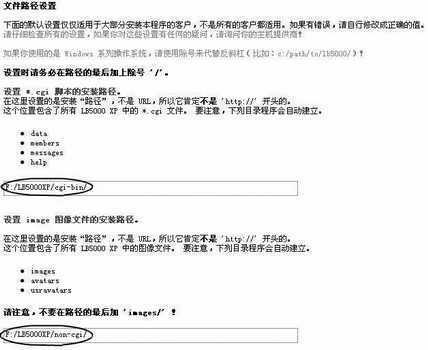 在架设论坛的时候,不能显示图片的故障是经常发生的,这多半是由于设置的图片路径不对造成的。要解决该问题,我们可以打开http://localhost/lb/cgi-bin/install.cgi,重新进行论坛的注册,在第一步中更改图片文件的URL路径,直到显示图片为止。