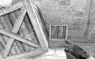 相信很多对正式比赛有一定了解的玩家,一定听到过闪光弹Bug这个名词。那么它到底是怎么一回事呢?简单来说,当你把闪光弹扔到两个箱子中间比较挤的空间,或者倾斜面与直面相切的角度,那么这颗闪光弹就会产生原本根本不可能有的作用,不但大面积地扩大了有效范围,更离谱的是具备穿墙效果。比如Dust2-B区门外的那两个箱子中间,以及斜坡的那两个绿箱子中间,只要你能把闪光弹扔在它们中间的位置,那么整个B洞内的人将会被闪得一塌糊涂(见图1、2)。类似的还有Cbble,1.6版本前的这张地图,CT从基地出去向B区路经一个大斜坡时会看到一个巨大的木箱子,这个地形就非常符合Bug产生的条件,只要将闪光弹扔到图中的位置,那么此时正想从B洞那边Rush的T必然会全体失明(见图3)。