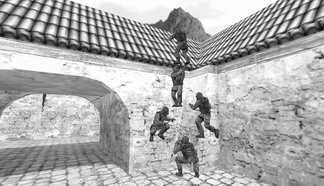 CS的地图设计还有一个非常夸张的错误,可以让游戏中的人物穿墙。这个Bug产生的条件是必须多人配合。比如在一个比较狭小的空间内,原本只可容纳一个人的高度,但是可以让两个人蹲着搭一个人梯,然后两名队员都站起来,体积超出了地图常规情况下的容纳量,这个时候上面的那位队员就会被顶出天花板,到达上一层的空间位置。不过这个Bug还是有一个前提条件的,就是你被顶出去的位置也必须在地图里的空间,而且也不是所有的类似地形都可以这么顶。下面来介绍几个比较特殊一些的地点。