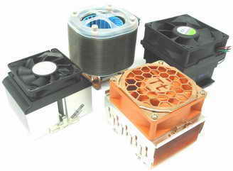 我们这里只以CPU主动散热器中的风冷散热器为例子进行简单的介绍。常见的风冷散热器的优劣要从多个方面综合判定,并不是说采用纯铜、热管还有高速风扇就一定很好,关键要看整体设计的合理性。