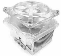 狂风战士就是前一段时间大家谈论得比较多的AVC 112C86散热器。它通过了AMD认证,采用了铝挤压成型的散热片,底部采用塞铜技术。狂风战士也采用了12V、0.15A的6cm翼手龙风扇,而且在同样转速的产品中,能提供更大的进风量。
