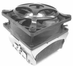 另外,底部的厚度也会影响散热片的瞬间吸热能力,可以看到很多高档散热器的底部都相当厚,典型的例子就是Intel的Prescott专用散热器,底部中芯的铜柱甚至达到了3cm以上。风道的设计也非常重要,出色的设计是充分利用气流将散热片的热量带走,同时将噪音抑制到最小。