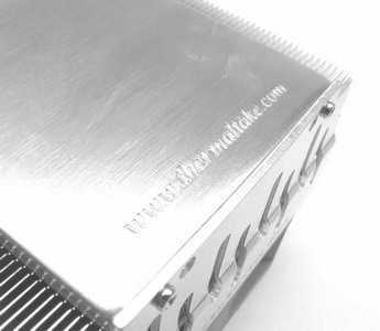 火星7的散热片采用回流焊工艺制造,在铜底上焊接了密集的鳍片以提供足够的散热面积。散热片整体做工很精湛,底部还刻有Tt的网址字样。火星7采用双滚珠轴承温控风扇,在20℃到55℃之间,转速从1300rpm到6000rpm线性变化。