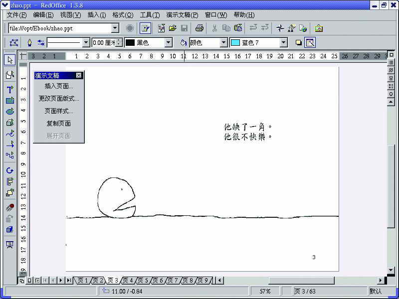 下面以RedOffice为例来创建第一份Linux下的幻灯片──总结文档。
