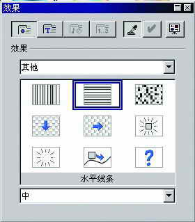 最后要为编辑好的幻灯片选择合适的动画演示效果。选中欲添加效果的内容,选择主菜单“演示文稿→效果”,就会出现效果对话框,默认为幻灯片效果,从效果下拉列表框中选择一个演示效果后,在下方的详细设置对话框中选择方向以及速度。