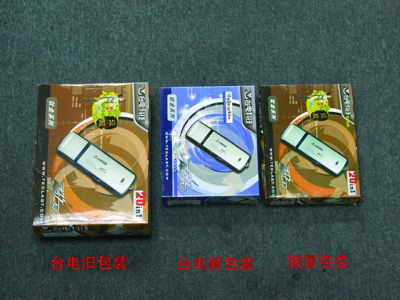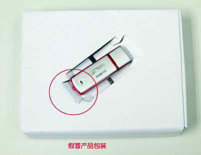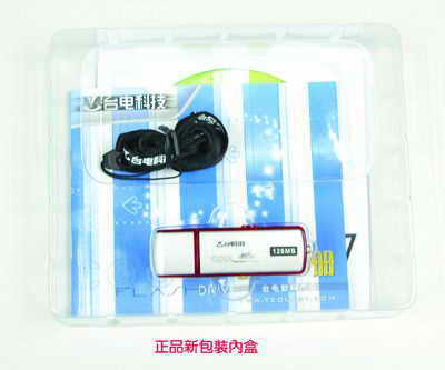在内包装盒上,台电旧包装采用的是高级的坑纸,外观上非常的光滑,硬度都可以达到标准的要求,而目前刚上市的新包装已经改换成了透明塑料,有专门的存放闪盘的凹槽位置。而假冒产品采用的是非常低质的坑纸,表面粗糙,而也没有硬度,同时,假冒的产品在存放闪盘的位置上,没有采用凹槽。