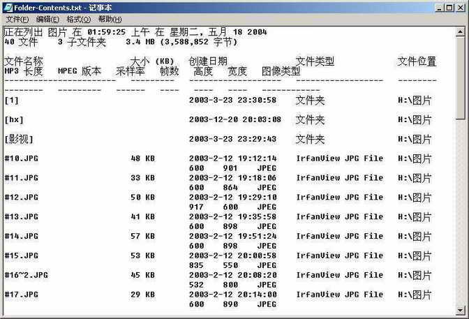 根据各属性字段一栏中显示出的文件相关信息,我们就可以对这些文件做到心中有数。最后将这个文本文件保存到指定的位置,就完成了图片文件“备忘录”的创建。