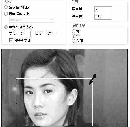 在时间线上定位编辑点,从“任务列表”里的“编辑”中选择“缩放局部画面”,弹出“缩放提示”,点击“添加缩放局部画面关键帧”,在弹出的设置对话框中,通过调整缩放矩形(图3),在视频预览区便能直接看到效果,满意后,单击“确定”。