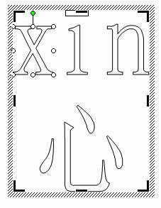 Step4 选中该字,单击工具栏“分解图片”按钮,这样选中“心”字任意笔画,周围会出现许多小节点(图2)。下面就可以对“心”字一笔一画进行拆分,