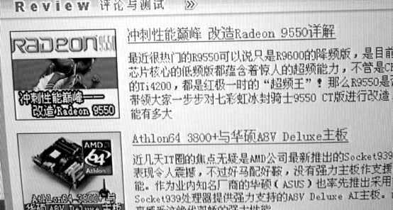 Radeon9550,这可是眼下显卡市场的当红小生,以其完整的DX9特效支持、不错的性能、适中的价格成为ATi中低端的利器。其核心/显存频率是250MHz/400MHz,虽然看起来频率并不高,但得益于RV350LX的优异DX9设计,游戏性能相当不错。