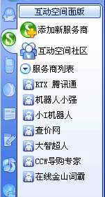 新版本增加了一个“互动空间”面板,其中收集了“互动空间社区”链接,还收集了“小强”、“小I机器人”、“大智超人”等聊天机器人,此外还有“CCW数码相机导购专家系统”、“在线金山词霸”等(如图2)。