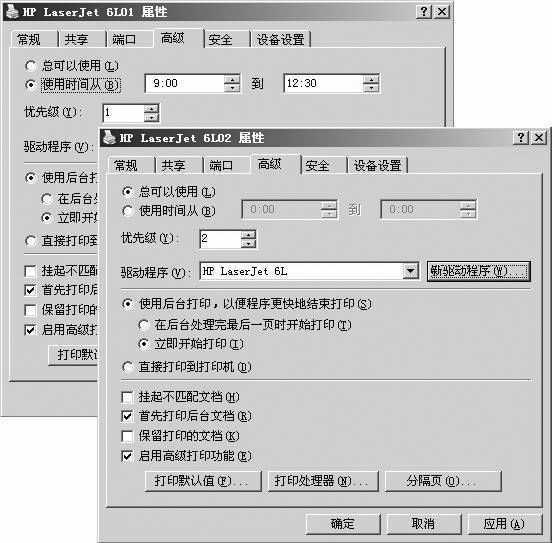 因为这次还是要实现对两个科室(即两个用户)的打印任务进行分别管理,所以小胖还是先进行了两台逻辑打印机的安装,然后又将两台逻辑打印机进行了共享。