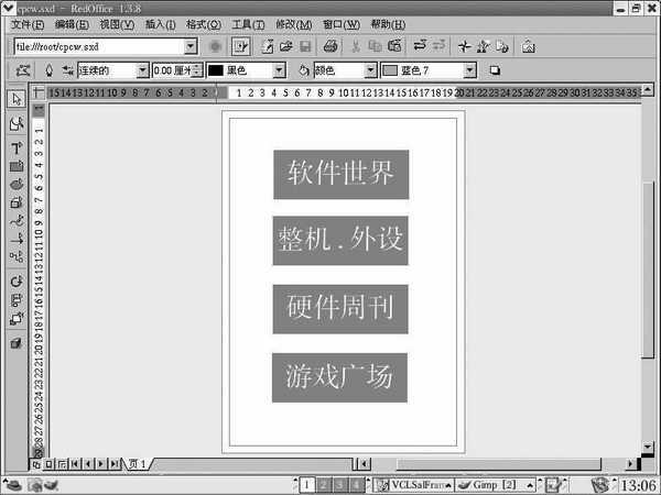 看了上述介绍大家有点心动了吧,下面笔者就以RedOffice为例,用两个实例来介绍一下Draw的详细使用方法及技巧。