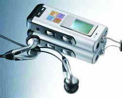 目前市场上比较常见的具有FM广播功能的MP3播放器比比皆是,建议大家选购品牌产品。笔者用的是DATUM的MH328(以下介绍以该机为例),内存容量为128MB,支持MP3、WMA等多种音乐格式,支持录音、FM收音等等(图1)。