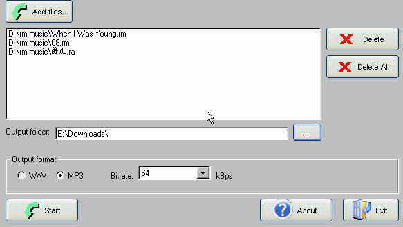 按左上角的“Add files”导入需转换的文件,导入文件的格式可以是RM、RA和RAM。软件支持批处理,可以连续导入多个文件一起处理。