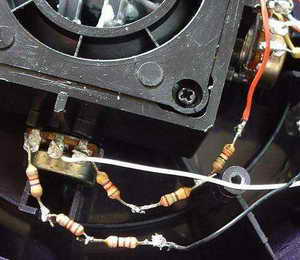 针对杆量的问题,通过分析发现,这款摇杆的X、Y轴位置取样是用两个电位器来实现的,红线是+5V,黑线是地,白线连接电位器滑臂,摇杆的偏移与电位器中轴联动,通过检测电位器滑动臂的电压来判断摇杆的位置,这样可以通过修改电路来调整杆量。只要在电位器的两端各串联一只阻值合适(4.7kΩ左右)的电阻就可以加大逻辑行程。因为串联电阻后电位器两端的电压减小,使电位器滑臂要移动更大的距离才能达到同样的电压变化量。笔者是用多个小电阻串联来代替一个较大的电阻,这样可以精确调整,还可以利用在电位器两端接入不同阻值的电阻来调整摇杆的中点。当然你也可以用可调电阻,不过可调电阻使用的时间长了阻值会发生变化。