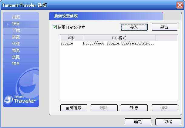 不过遗憾的是,TT中缺省的搜索引擎是QQ自带的(http://search.qq.com/),虽然提供了 “高校招生、欧锦赛、十面埋伏”等热门的主题,但终究比不上Google,有没有办法重新定义TT新的搜索引擎呢?