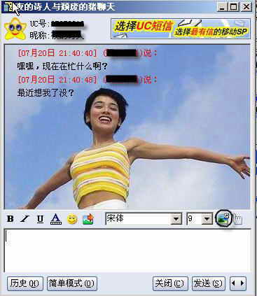 启动《UC场景编辑器》,在主界面中,点击左侧“背景”按钮,再点击右侧元素属性面板“图片来源”旁的“…”按钮,选取硬盘中某幅图片,例如MM的照片。接下来进行字体信息设置。点击左侧“字体”按钮,在右侧,分别就对方说出的和自己说出的文本字体颜色进行定义,可以保持默认不变;不过“聊天文本区域”就很重要了,将左右边距设置为10。光有背景温情浪漫还不够,自然得配上一首经典的情歌,接下来选取“声音”按钮,同添加背景的方法一样,选取音乐文件。