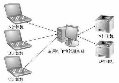 在“受够了”各科室因打印任务太多需要长时间等待而提出的抱怨后,老大终于坐不住了,命令小胖又买了一台打印机,同时他还要求两台打印机使用一台打印服务器,而且两台打印机要可以自动分担打印任务。老大的“命令”一下达,小胖怎敢怠慢,在仔细研究相应的技术后,他决定使用刚学会的打印池技术来完成老大的要求。