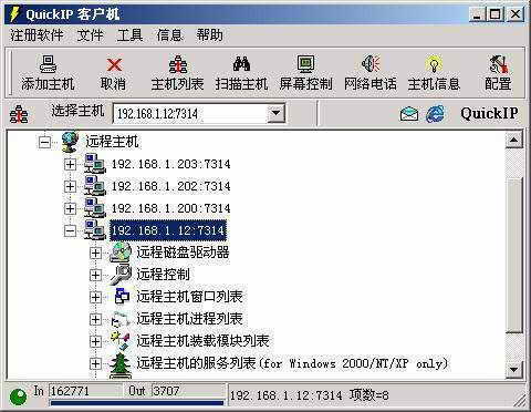 现在,我们来看看如何在控制端进行远程控制。因为QuickIP的远程控制功能很强大,它可以控制远程机器的鼠标、键盘、所有进程、服务程序等,所以笔者只挑了几个比较常见的控制操作进行介绍。