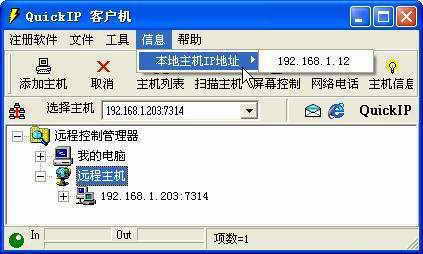 先将QuickIP在每台机器上都安装、设置好,使每台机器既可以是服务器端,也可以是客户端。只要它运行服务器端程序,它就可以被别的机器控制;当它运行客户端程序时,它可以去控制别的机器。这样,我们就可以任选几个控制点执行客户端程序,将所有要控制的机器作为主机添加进去,从而实现一台机器被多台机器多点控制。图3所示内容便是主机192.168.1.203同时被IP为192.168.1.202和192.168.1.12的两台客户机所控制。