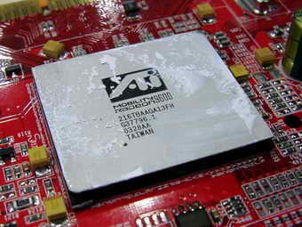 和普通的桌面图形处理器芯片不同,移动版的Radeon9600芯片将四颗BGA显存直接做在了GPU的金属盖子下面,这样做的好处是减少显卡的体积,毕竟它是为机身内部空间有限的笔记本电脑所设计的。采用移动版Radeon9600的好处是,功耗更小,发热更低,缺点是在驱动程序和与主板的兼容性上,也许会有一些小麻烦。