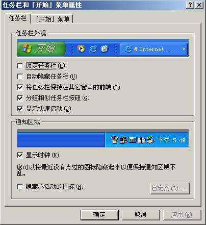 还有一些“任务栏和‘开始’菜单”属性设置本文就不再详细说明了,实践出真知,希望朋友们能自己亲手按上面的例子操作一番,自然会发现很多有趣、有意义的地方。