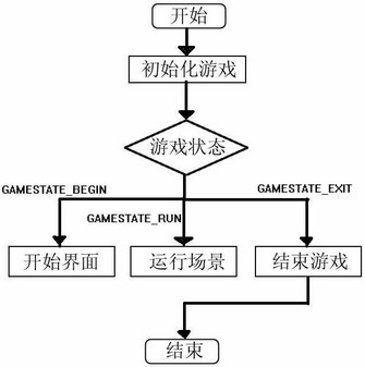 上面的三个case语句就对应了状态机的三个状态。那么如何去改变游戏的状态呢?这很简单,一开始把游戏状态设为GAMESTATE_BEGIN,那样就会进入游戏的开始界面;在游戏的开始界面点击“开始游戏”时就把游戏状态改为GAMESTATE_RUN,这时就进入游戏的正题了;点击“退出游戏”时游戏状态设为GAMESTATE_EXIT。