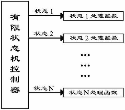 状态机用于游戏中,就是把一个游戏当成一台状态机,根据游戏中不同的状态来调用一个或多个不同的函数,从而实现不同的功能。在图1中,游戏有三个状态:GAMESTATE_BEGIN、GAMESTATE_RUN、GAMESTATE_EXIT,分别调用游戏的开始界面、运行场景(这是游戏的核心)、结束游戏三个函数。一个简单的状态机结构如图3所示。