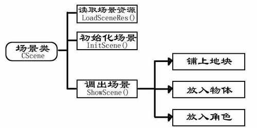 在游戏中调入完整的场景就是要依次调入地块、物体和人物,但在这之前,先要初始化场景类。