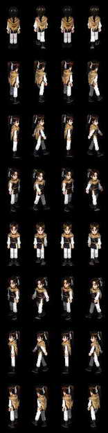 这一幅图一共有八行人物,从上到下的八行我们分别编号为0到7,对应的角色走动的方向分别是:上方,右上方,右方,右下方,下方,左下方,左方,左上方。