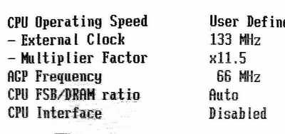 例如我们对一块AMD 1800+进行超频,首先要知道,Athlon XP 1800+的主频等于133MHz外频×11.5倍频。我们只要将倍频提高到12.5,CPU主频就成为133MHz×12.5≈1.6GHz,相当于Athlon XP 2000+了。如果我们将倍频提高到13.5时,CPU主频成为1.8GHz,也就将Athlon XP 1800+超频成为了Athlon XP2200+,简单的操作换来了性能很大的提升,很有趣吧。
