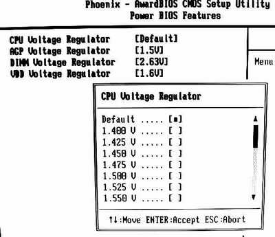 在BIOS中可以设置和调节CPU的核心电压(如图7)。正常的情况下可以选择Default(默认)状态。如果CPU超频后系统不稳定,就可以给CPU核心加电压。但是加电压的副作用很大,首先CPU发热量会增大,其次电压加得过高很容易烧毁CPU,所以加电压时一定要慎重,一般以0.025V、0.05V或者0.1V步进向上加就可以了。