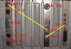其次是把视频线、音频线、闭路电视天线按正确的连接方式连接好。用视频线将股票卡视频VIDEO接口和显卡视频输入COMP-IN接口连接起来;用音频线将音频AUDIO口和声卡音频输入LINE-IN接口连接起来(注意音频线要用莲花头转三芯3.5mm头,莲花头接股票卡AUDIO音频输出,3.5mm头接声卡音频输入);股票卡RF天线接口接闭路电视天线。