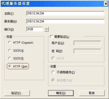 如果代理服务器地址不是很多,可以逐个进行验证。先单击选中待验证的代理服务器地址,然后点击下方的“验证”,软件默认的测试站点是http://www.microsoft.com,当然也可以把它改为你经常光顾的站点,比如http://www.cpcw.com,这样得到的数据会更准确些。点击“开始”后在“验证”对话框里会返回以绿色字体显示的“验证通过,耗时 *** ms”,这里的“耗时”值表示客户端通过代理服务器连接到目的服务器的实际响应时间,所以越短越好。如果返回的结果是以红色字体显示的,则表示代理服务器连接不上目的服务器或者连接超时,那么此代理服务器并没有实际价值,可以考虑删除。