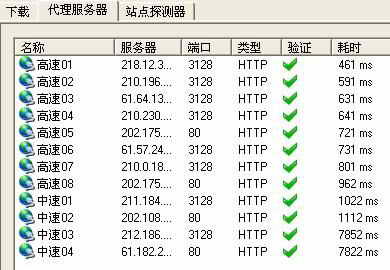 当把所有的代理服务器地址都验证完毕后,点击服务器列表上的“耗时”标签使代理服务器按响应速度的快慢自上而下顺序排列,然后从上到下把它们依次重命名为高速01、02、03,中速01、02、03之类的方便以后选用,如图3所示。