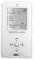 JNC的型号为M5的MP3机,内置1.5GB微硬盘,支持MP3、WMA、OGG格式, LCD屏为128×128点阵,可同屏显示8行文字。M5内置FM收音、录音和线路直录MP3功能,采用USB2.0接口,内置了可充锂电池,最大连续播放时间为8小时。
