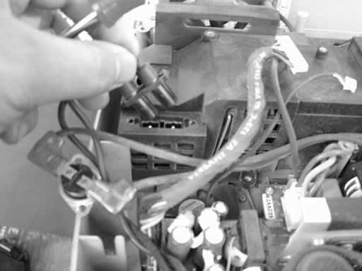卸去主板上的3颗螺丝, 拆去固定两个VGA接口的4只六角螺丝,拔除主板与输入接口板的连接插头,拿下主板(图4)。