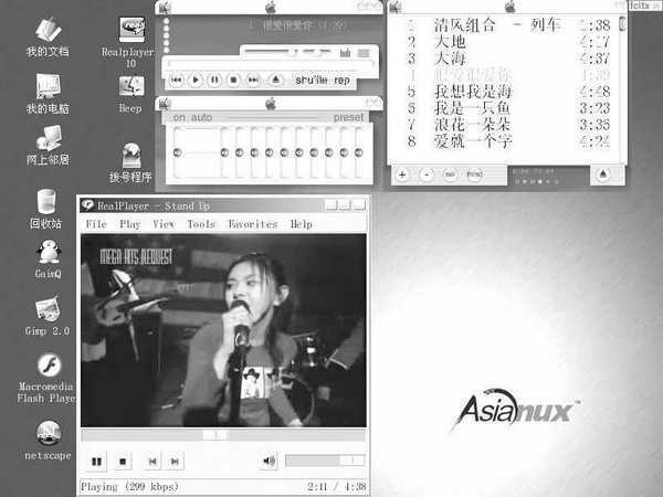 没有多媒体的操作系统可没法用,于是笔者又通过软件包管理器安装了类似Winamp的播放器Beep以及最新的Realplayer 10(图5),这下Asianux就可以播放CD、MP3以及AVI、RM和RMVB格式的电影了。