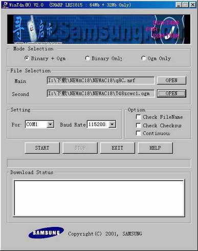 第二步:双击运行“WinTdn T400w&T500.exe”程序(图2),在“Mode Sdection”下选择“Binary+Ogm”模式,表示同时刷入主、副升级文件,接下来在“File Selection”下分别选择加载前面下载的升级文件。“Setting”项是设置连接端口及速率的,用户可根据实际连接选择端口,并将速率设为“115200” ;“Option”中的选项是检查文件所用的,为避免升级出错,全部不选。