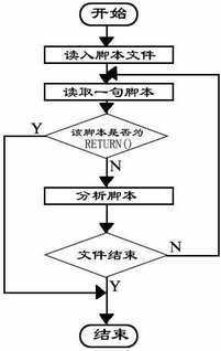 换行符是默认的输入终止符,可以省略。读取一个脚本文件时就是不停地读取每一句脚本,把脚本交给分析脚本函数处理,直到遇到“RETURN()”或文件结束,读取每句脚本的流程图如图2所示。