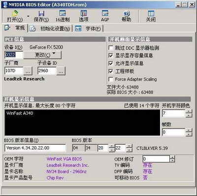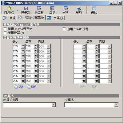 打开NVIDIA BIOS Editor,读入刚才备份的显卡BIOS,点击初始化设置。在这个窗口中可以看到显卡出厂的默认工作频率(如图4)。接下来就可以根据需求适当地调整显卡和显存的工作频率,调整好后点击窗口下端的DUP按钮进行复制,最后点击保存,将修改后的频率保存到BIOS文件中,这样我们就制作完成了一个超频后的新BIOS文件。