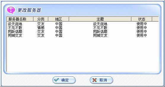 点击“GO”即跳出一个“正在下载设置所需的文件”提示框,此时需要稍等一会,才能进入哈哇ICU多人视频聊天室。刚进入聊天室,你会看到一个“更改服务器”的提示框(如图2所示),在此有四个服务器名称(谈天说地、不见不散、同龄话题、同城交友),你可以任选一个点击“确定”进入,然后再点击“进入”即可进入相关话题(此时已经来到了多人视频聊天室)。