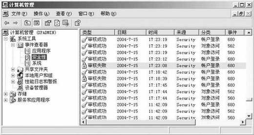 接下来,在“计算机管理”窗口中的“计算机管理(本地)”项自动切换成“计算机管理(远程IP地址)”项后,依次展开“系统工具→事件查看器”,在下面的“应用程序”、“安全性”、“系统”等日志中就可以找到远程计算机故障出现的原因(图2)。