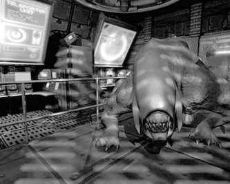 早先某些国外媒体曾这样形容:DOOM3创造了一个“恐怖”的地狱世界。对于营造游戏气氛这一点,DOOM3把握得很到位。在默认设置下,即使玩家把游戏亮度开到最高,游戏画面还是偏暗,这尽管造成了玩家在游戏中运动的不便,但同时也为整个游戏“恐怖”的格调打下了良好的基础。另外,敌人的行动也是神出鬼没,即使笔者对敌人的攻击预先做好了心理准备,但突如其来的敌人还是让笔者吓一大跳。同时,由于游戏画面过于阴暗,所以玩家在被敌人攻击多次后依然找不到敌人的情况时有发生,这种随时被未知敌人攻击的心理压力也让游戏的恐怖感加深。