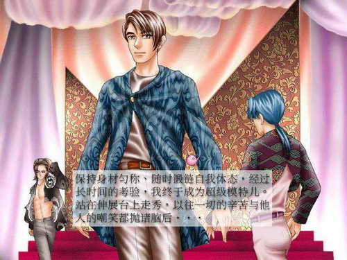 最初我定的目标是“不谈爱情,只拼搏事业”!但我郁闷了……原本打算培养一位像陶喆那样又能写又能唱的“音乐教父”出来,结果游戏结束时系统却给了我一个“超级模特儿”的结局。不就是人太帅,随便拍几个广告就得了“最佳模特儿奖”么。可怎么说也不能对我三年来发了那么多唱片和创作了那么多词曲都视而不见啊!吸取了第一次的教训,再培养人物时,我特地除了唱片一律不接。熬了三年,“教父”还是没当成,造就了一个“刘天王”出来。真是有心栽花花不开,无心插柳柳成荫……在我坚持不看攻略玩游戏的谬论指导之下,玩了N次还是没有得到“创作型歌手”的结局。于是我开始“放浪形骸”,将打工得来的钱全“败”到店里去,从头到尾将自己“武装”起来,致力于营造风花雪月的故事──泡MM……啊,演艺圈里又一个大好青年就这样没落了……