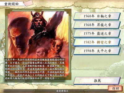 当这些条件全部满足之后,信长发出上洛的指示,把本能寺之变的几个重要战场,本愿寺城和丹波国都统统打掉,就会触发一系列的事件,最后重现本能寺之变。从这段时间开始到由此带来混乱的结束,木下藤吉郎先改名为羽柴秀吉,随后改为丰臣秀吉。在这段战国时代混乱巅峰的十多年时光中,即便是织田信长、羽柴秀吉、明智光秀这样的能人也无法预料明天会如何……