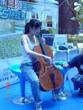 西安赛区不少MM在才艺表演的时候都选择了演奏乐器,特别是B组的4位选手里,居然有3人分别演奏了大提琴、小提琴和口琴。看着这些新潮时尚的MM在台上演奏,阿当觉得倒还是真有点像时下最火爆的“女子十二乐坊”。其实在本次比赛的过程中,有很多喜爱CS的MM借此机会相识,并相约成立了战队(阿当:嘿嘿!阿当我现在还是其中一支战队的名誉领队呢:P),阿当在看到西安赛区的MM选手才艺表演后,突发奇想:这些MM成立什么演艺组合也是个不错的选择哟。